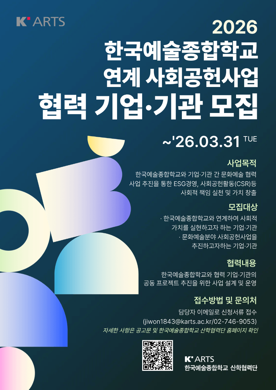 한국예술종합학교 연계 사회공헌사업 협력 기업·기관 모집 안내